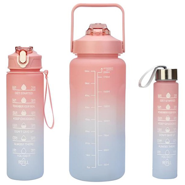 Tři velikosti lahví pokrývají celý den – od rána až po trénink.