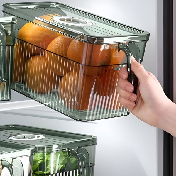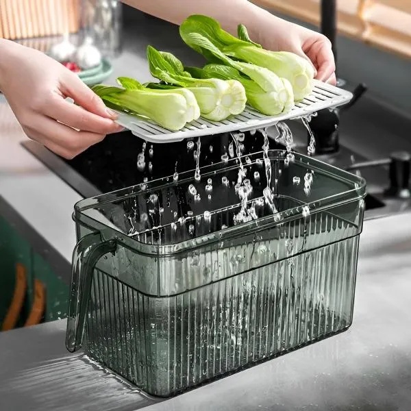 Integrované sítko odvádí přebytečnou vodu a chrání potraviny před zkažením.
