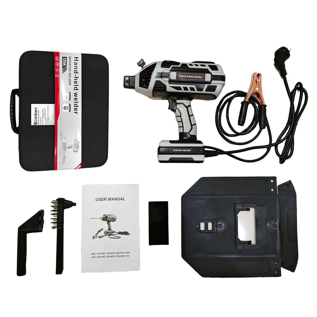 Obsah balení: svářečka, úložný pouzdro, skládací svářečská kukla, drátěný kartáč, zemnící kabel (1,5 m) včetně připojovacích kleští